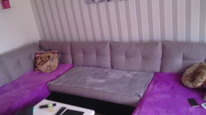 okom som sa prestahovala a prišiel čas zariadovat byt....penazi vela nebolo ale predsa sa mi podarilo urobit si všetko po svojom a stale sa do zveladuje,uhladzuje a dokončuje :) no výsledok je už viditelný a som na neho pyšna :) ....izba z ktorej mam teraz hniezdočko odpočinku a miesta kde možem s hrdostou prijmat navštevy sa mi podarilo pomaly dosiahnut moj sen :) ....izba,ktorá bola v hroznom stave,podlaha zakryta kuskom lina a to ani nie po celej ploche izby,stena ktora bola prasknuta pozdlž jednej strany a farbu mala akoby poflusanu a nie namalovanu ma zo začiatku desila...no postupom tyždnov som začala pracovat a napravovat pre mna zo začiatku neopravitelne veci ... stenu sme vystierkovali s kamaratom,čo nebolo ani nejak extra nakladne a hlavne zlate ruky odborníka a kamarata v jednom mi velmi pomohli a tak nasledovalo položenie plavajucej podlahy,to už bola drahšia položka ale bola nezbytna na začiatok byvania ...ako každý človek,ktorý konečne dosiahne uskutočnenia sna a začne byvat vo svojo som mala asi milionov snov ako by som to chcela,no peniaze sa pomaly minali a tak aj moje sny poriadne redukovali ... jedine od čoho som neodstupila ani nahodou bola obrovska sedacia suprava v tvare U čo bol moj najvatši sen - teraz už splnený frekventívne využivany :D všedtkým kto uvažuejte o takej sedačke a mate priestor vhodný možem len vrelo odporučit - asi najlepšia kupa aj cenovo to nebolo až take hrozne ... tak ake mate vy sedačky,pochvalte sa tiež :)